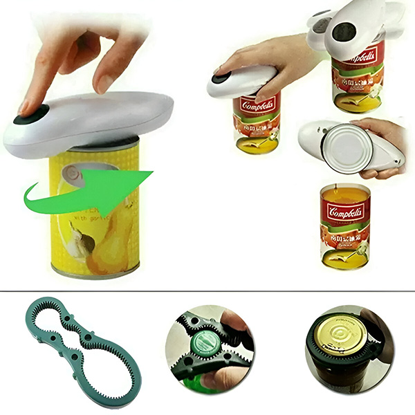 Отвора без проблеми секоја тегла со притискање на копче! 🥫 Идеален за тегли од сите големини, овој електричен отворач за шишиња обезбедува глатки и безбедни рабови. Овој компактен и пренослив комплет вклучува автоматски отворач за конзерви и рачен отворач за шишиња. Безбеден и совршен за пикници и кујни.