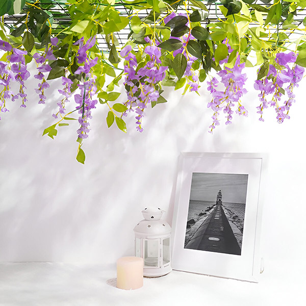 Заморени од одржување на вистински цвеќиња кои венеат и бледнат? WISBLOOM е имитација на цвеќиња од глицинија со лисја од бршлен која додава природна убавина во вашиот простор без никакви проблеми. Овие висечки цвеќиња остануваат свежи и обоени година по година, осигурувајќи дека вашиот двор или дом секогаш ќе изгледаат прекрасно.