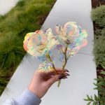Секоја роза е изработена со иридесцентен и холографски премаз кој прекрасно свети на светлина, создавајќи сјај сличен на галаксија кој е едноставно хипнотички.