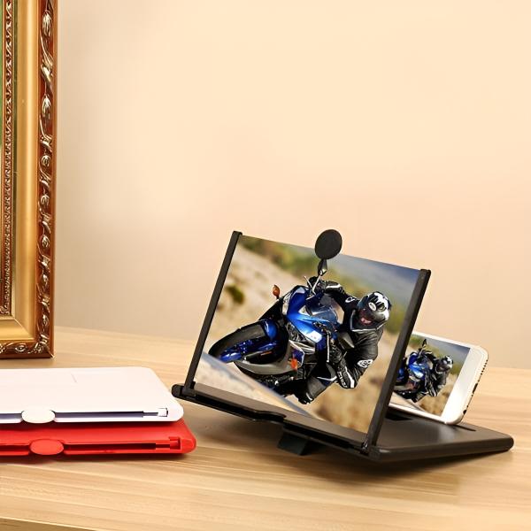 Лупата за зголемување на екранот на телефонот од 9,8 инчи користи физичка оптичка технологија за прикажување на слики, видеа и други датотеки од мобилниот телефон.