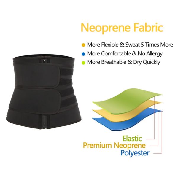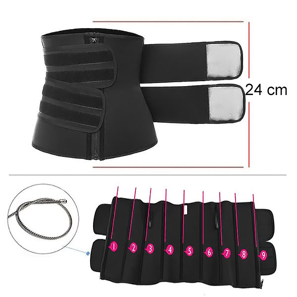Опремен е со две чврсти прилагодливи затворачи кои обезбедуваат значителна поддршка и подобруваат компресијата во областа на стомакот и струкот.