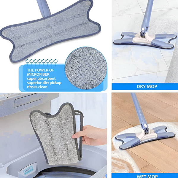 Ексклузивната X-образна глава е дизајнирана да достигне до аглите и рабовите каде што традиционалните мопови имаат потешкотии. Идеална за кујни, бањи и влезови каде што нечистотијата се склони да се акумулира.