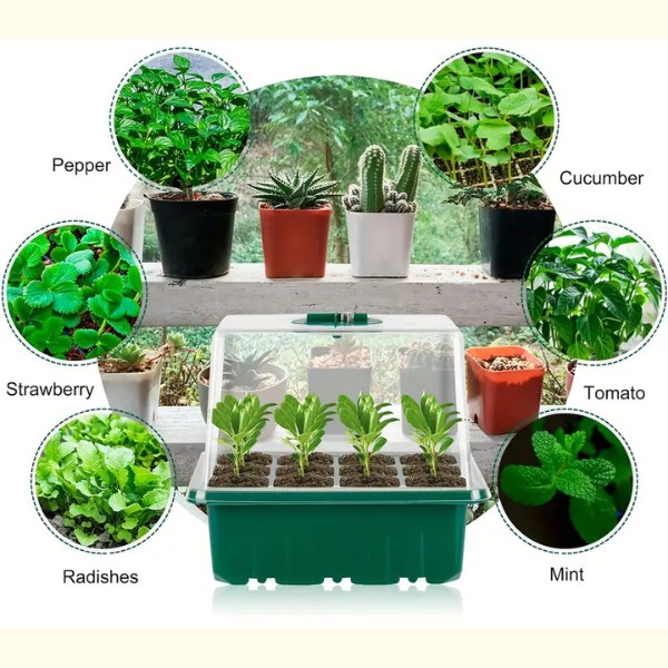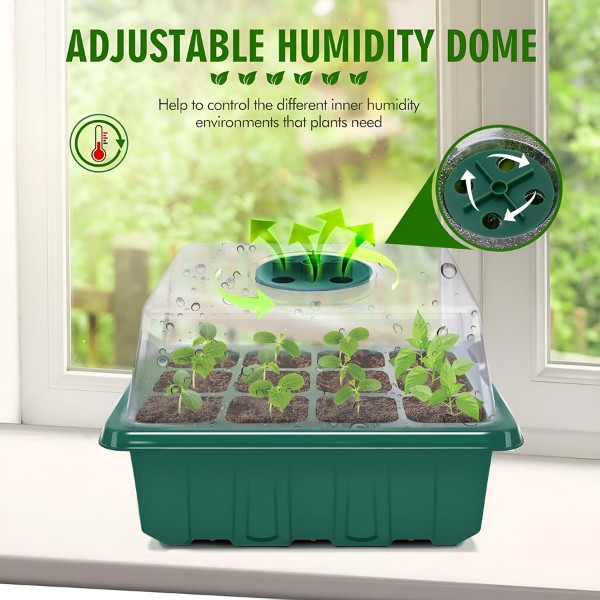 Секој сад има 12 дупки и капак со прекинувач за вентилација. Сега можете да ги контролирате нивоата на влажност и да обезбедите најдобра средина за вашите садници. Одгледувајте здрави, добро проветрени корени за посилни растенија.