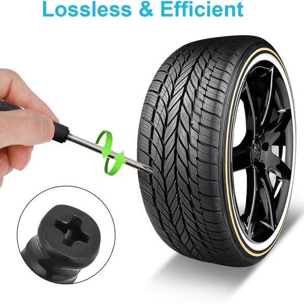 Едноставно завртете го гумениот завртка за да привремено го намалите истекувањето на воздух кај помали оштетувања на газечкиот слој на гумата и безбедно да продолжите со возење до најблискиот сервис.