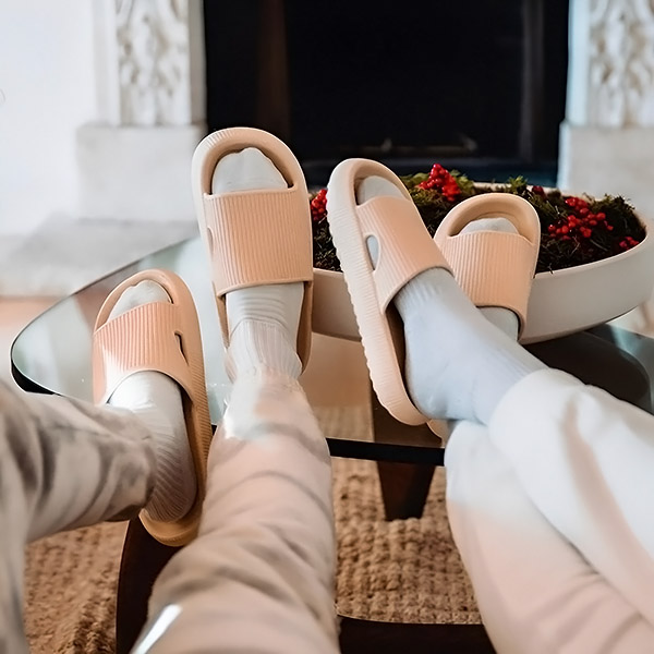 Уживајте во мирот и удобноста дома со папучите FLIPSY. Лесни, тивки и противлизгачки, се совршени за релаксирачки утра и одлучни чекори на дрвени подови, плочки или теписи.