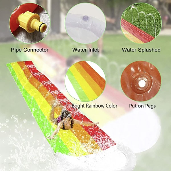 Забавувајте се надвор со надувливиот тобоган со систем за наводнување! Глатката и лизгава површина овозможува брзо лизгање, додека системот за наводнување ја одржува лизгавоста на тобоганот и додава возбуда. Погоден за деца и возрасни!