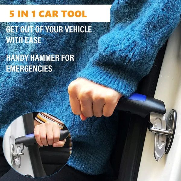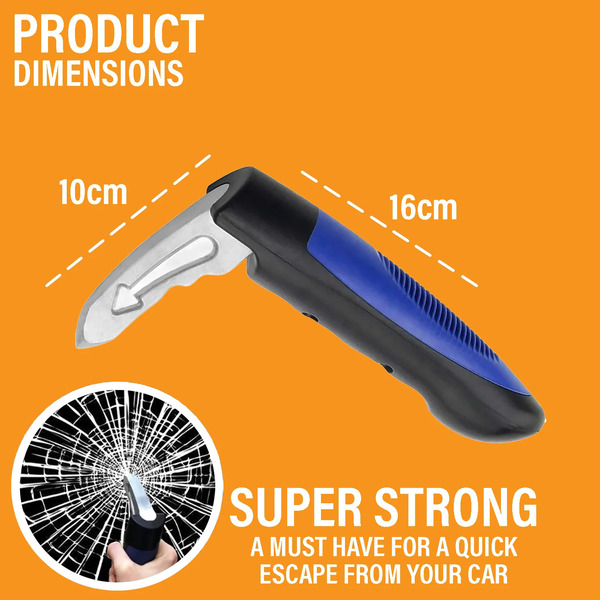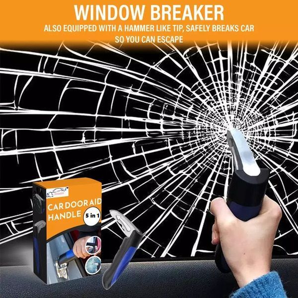 Оваа разновидна помошна рачка за автомобил комбинира уред за кршење стакло, сечач за безбедносен појас, полначливо фенерче, свирче за итни случаи и рачка за врата – идеално за итни ситуации и секојдневна употреба.